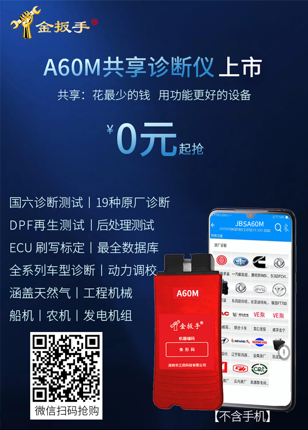 花最少的錢用更好的設(shè)備,A60M手機(jī)版診斷儀更適合汽車維修院校畢業(yè)生實(shí)習(xí)操作使用,功能強(qiáng)大費(fèi)用低廉,實(shí)習(xí)修車的好幫手。一個(gè)接頭配備手機(jī)安裝APP輕松實(shí)現(xiàn)各類柴油車包括發(fā)動(dòng)機(jī),自動(dòng)變速箱,車身控制模塊等各個(gè)功能使用,讀碼,清碼,數(shù)據(jù)流,元器件測(cè)試,標(biāo)定發(fā)動(dòng)機(jī)參數(shù),修改ECU數(shù)據(jù)等各種功能應(yīng)有盡有,特別適合各類汽車院校實(shí)習(xí)畢業(yè)生使用。